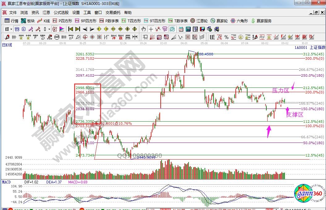江恩看盤綜述:通過(guò)贏家江恩理論系統(tǒng)趨勢(shì)、時(shí)間、價(jià)格工具綜合評(píng)判市場(chǎng)二星看多(五星評(píng)級(jí)標(biāo)準(zhǔn))。8月收官指數(shù)挖坑后點(diǎn)位回到月初2900附近,走勢(shì)完美契合了贏家江恩系統(tǒng)規(guī)則,失守一線看低一線,站穩(wěn)一線看高一線。具體行情發(fā)展是1號(hào)失守極反通道生命線,6號(hào)回落藍(lán)色下軌線支撐,27號(hào)指數(shù)上攻至黑色生命線,8月大盤關(guān)鍵位通過(guò)極反通道清晰的展現(xiàn)出來(lái),直觀有效的得出交易信號(hào)。指數(shù)圍繞生命線下震蕩已有9個(gè)交易日,短周期時(shí)間窗口是下周初,日線時(shí)間窗口是9號(hào),關(guān)注周末消息面動(dòng)向,此位置方向明確后將影響著9月行情發(fā)展,方向選擇參考關(guān)鍵位是60分鐘生命線2867附近,日線生命線2903位置,指數(shù)突破那個(gè)位置都對(duì)應(yīng)著倉(cāng)位管理,從技術(shù)角度分析收復(fù)生命線的概率大(原因是60分鐘生命線上運(yùn)行),但要做好不同走勢(shì)的應(yīng)對(duì)策略,用規(guī)則紀(jì)律做交易。9月2號(hào)盤中壓力是2903、2918,盤中支撐2867點(diǎn)。操作策略,指數(shù)生命線震蕩運(yùn)行,激進(jìn)者3-5成倉(cāng)交易,買在支撐賣在壓力,觸及關(guān)鍵位做加減倉(cāng)動(dòng)作。