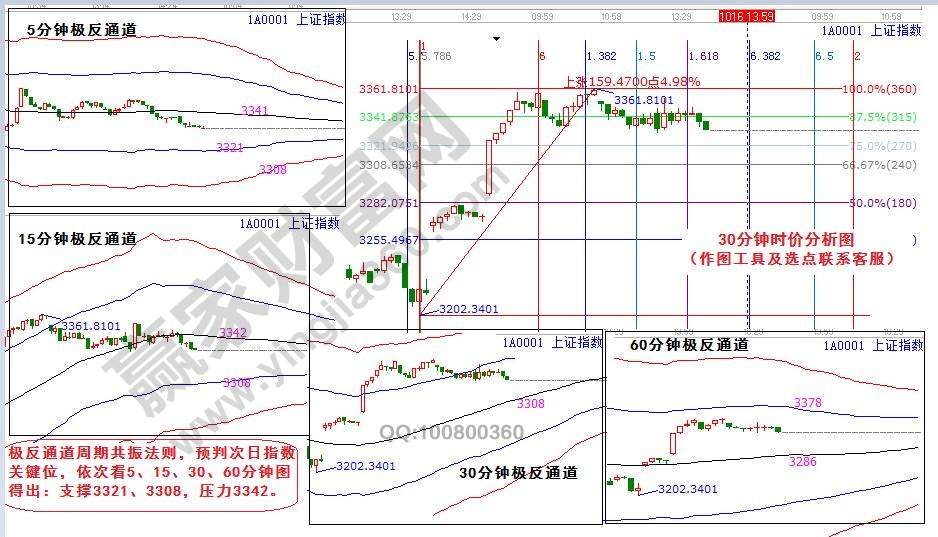 先看日線:15日、16日是預(yù)算的日線時(shí)間窗口,15日收在3332,沒(méi)有給出方向選擇,16日應(yīng)重點(diǎn)關(guān)注方向選擇。再看日內(nèi)各周期:5分鐘,擊穿生命線走弱,下方藍(lán)線3321、紅線3308,生命線壓力3341;15分鐘,破位生命線走弱,下方藍(lán)線支撐3308,生命線壓力3342;30分鐘,失收藍(lán)線,下看生命線支撐3308;60分鐘懸空,藍(lán)線3378,生命線3286。疊加30分鐘時(shí)價(jià)分析圖共振得出:16日盤中壓力3342,支撐3321、3308。本周五16日是日線時(shí)間窗口,結(jié)合時(shí)間因子及小周期顯示:如能下探至3308一線,則大概率見短線低點(diǎn),等待市場(chǎng)確認(rèn)。