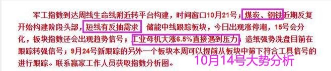 煤炭指數(shù)10月14號贏家江恩分析解讀,煤炭、鋼鐵板塊工具顯示有反彈信號,隨后煤炭連續(xù)三天上攻,今日更是大漲6%,鋼鐵板塊也在緊隨其后上漲1.5%.。