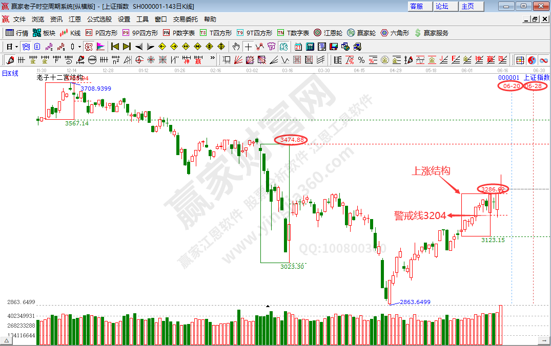 依據老子時間數列所揭示的時間密碼:滬指未來次級別時間窗口為6月17日、6月24日。