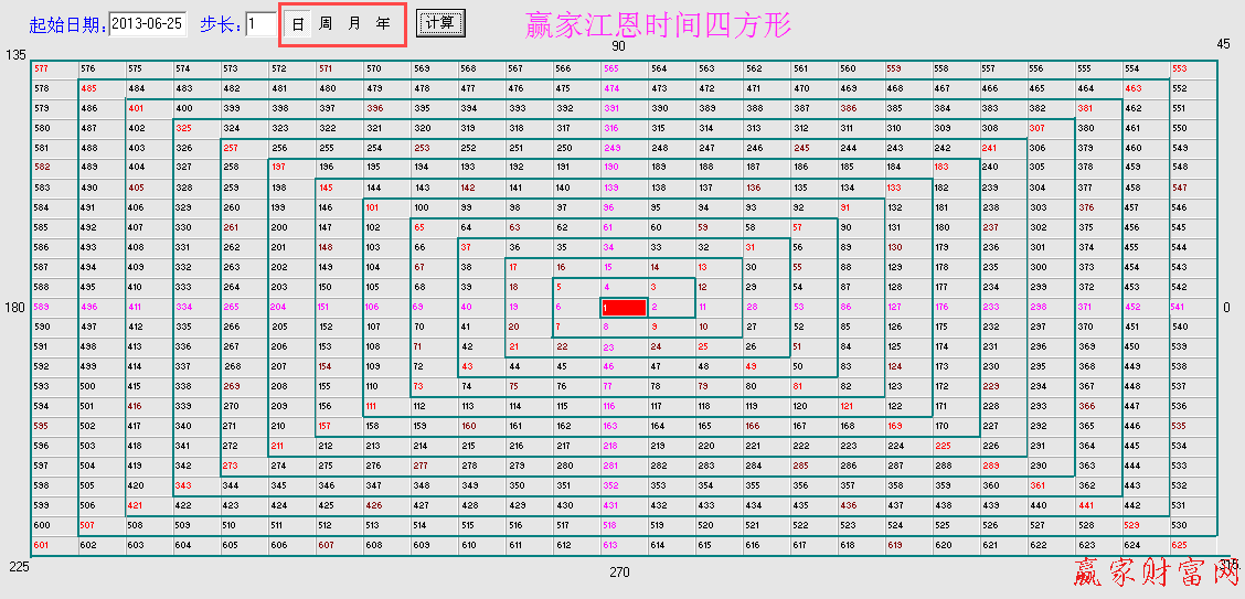 注意價格,并測量以周,月,日為單位的時間,你將能夠明白和理解未來的走勢怎么運動。在主要的12圖表和9方圖中查找,依照時間思考從西到東的幾何角度,然后思考從不同基準和起點出發(fā)的角度,那你就能測定一個股票的位置。
