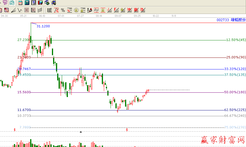 我們以002733來(lái)看看,共振在實(shí)戰(zhàn)中的應(yīng)用,看看用江恩我們?nèi)绾蝸?lái)操作這只個(gè)股。