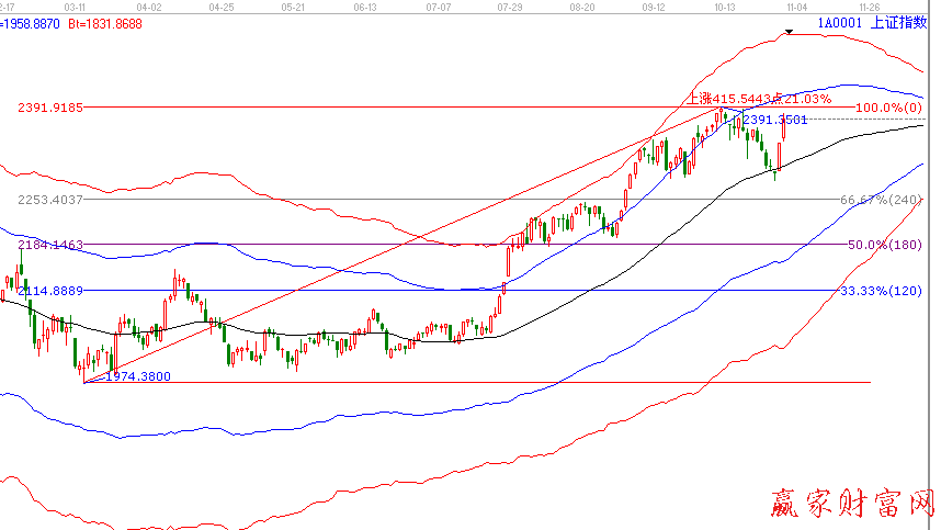 技術(shù)分析:從技術(shù)面來看,滬指自觸底2279點后迅速企穩(wěn)回升,短短3個交易日內(nèi)反彈幅度達到100點左右,短線反彈空間或已一步到位。目前大盤運行到前期頂部高點附近,面臨巨額套牢盤拋壓,短線抄底進場的獲利盤也有較大回吐壓力,后市大盤恐將進入橫盤整理階段。從圖中可以出到,目前大盤已經(jīng)穩(wěn)占極反通道上軌線,市場人氣開始恢復,結(jié)合今日的量能來看,后市很有可能突破2391點,后市如果向上突破壓力位在2410附近。
