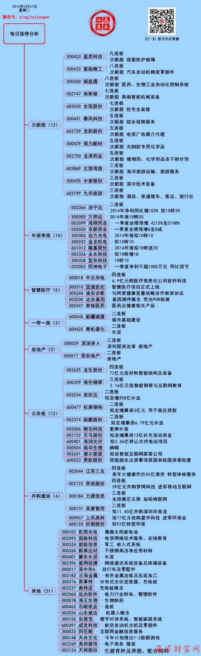 漲停原因揭秘:海翔藥業(002099)預計2015年1-3月實現歸屬于上市公司股東的凈利潤為1.45億元至1.75億元,同比增長4214.83%至5107.56%。