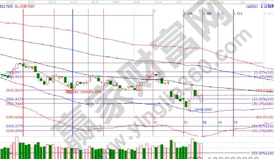 通過江恩理論系統(tǒng)趨勢、時間、價格工具綜合評判市場二星看多(五星評級標(biāo)準(zhǔn))。周四市場低開在15分鐘藍(lán)線關(guān)鍵位置后止跌反彈,截止收盤反彈至生命線壓力2610附近,此位置同時也是60分鐘生命線位置、也是江恩四方圖中的270度位置,則周五應(yīng)重點關(guān)注2610一線,強勢突破則繼續(xù)看高2680一線,反之,仍將回落洗盤。操作上,日線股指仍處于生命線下弱勢區(qū),整體倉位嚴(yán)格控制在3-5成,激進客做好風(fēng)控的前提下,低吸博弈短線機會。10月為月線重要時間點,最后幾個交易日,市場波動劇烈是價格追隨時間的一種表現(xiàn),中長期趨勢能否自此揚帆,靜待月線收盤。