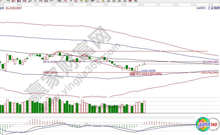 大盤日K線反彈至短線目標(biāo)位黑色生命線2585附近回落,早盤10:53分贏家江恩系統(tǒng)工具用戶群提示短線高拋,鑒于市場目前依然處于反彈周期內(nèi),指數(shù)震蕩整理修整短期走勢后,還有機(jī)會再度攻擊黑色生命線。空間點(diǎn)位上,江恩百分比延伸線提示2530、2516為10點(diǎn)盤中支撐,2567點(diǎn)為盤中壓力,時間窗口,1月15日、23號為日線時間窗口。操作策略,大盤短線反彈接近目標(biāo)位,后續(xù)轉(zhuǎn)為震蕩,30分鐘生命線2516附近不破,9號短線高拋的籌碼逢低接回。