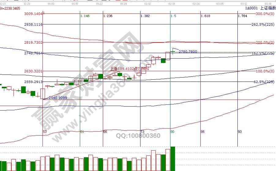 大盤在極反通道藍(lán)色上軌線與紅色外軌線構(gòu)造的超強(qiáng)通道內(nèi)運(yùn)行,此區(qū)域代表市場(chǎng)熱度較強(qiáng),板塊、個(gè)股均有機(jī)會(huì)輪番表現(xiàn),享受市場(chǎng)瘋狂的同時(shí),但要小心瘋狂背后不斷積累的風(fēng)險(xiǎn),目前工具還未出現(xiàn)警示信號(hào),按規(guī)則穩(wěn)健者關(guān)注15分鐘生命線得失,激進(jìn)者關(guān)注60分鐘生命線得失;空間點(diǎn)位上,江恩百分比、江恩價(jià)格四方形提示,2730、2720是支撐,2765、2778為壓力,時(shí)間窗口是28號(hào)。操作策略,大盤日K線從強(qiáng)勢(shì)通道進(jìn)入超強(qiáng)通道,個(gè)股波動(dòng)空間增大,分批高拋藍(lán)色上軌線或紅色外軌線壓力個(gè)股,倉位切換至生命線附近有量能配合的個(gè)股,整體倉位保持在5-6成。