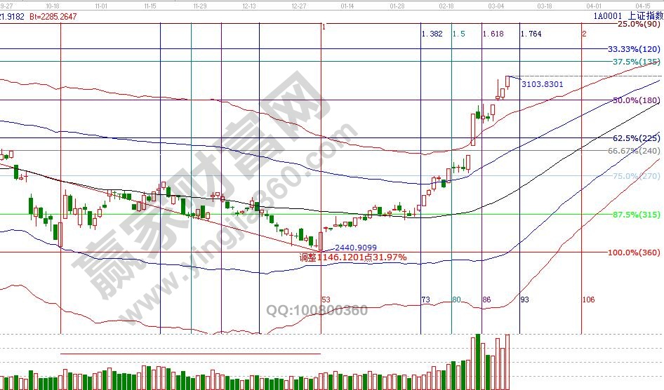 大盤月K線繼日、周K線后今日收盤站在線上,日線延續(xù)在紅色外軌線外極強(qiáng)區(qū)震蕩上攻,量能決定了強(qiáng)度及持續(xù)性,明日市場將進(jìn)入日線時(shí)間周期窗口,空間點(diǎn)位上,江恩輪中輪、四方形提示支撐3074、3055點(diǎn),3132、3153點(diǎn)壓力,觀察時(shí)間窗口期市場人氣股變化,7號及下周12、14號,特別注意12號。操作策略,大盤維持日線震蕩上行,持股上享受瘋狂的同時(shí)不斷提高止賺位,即保護(hù)了利潤又可將利潤最大化,整體倉位保持在6-8成,時(shí)間窗口跟隨盤面做管控。