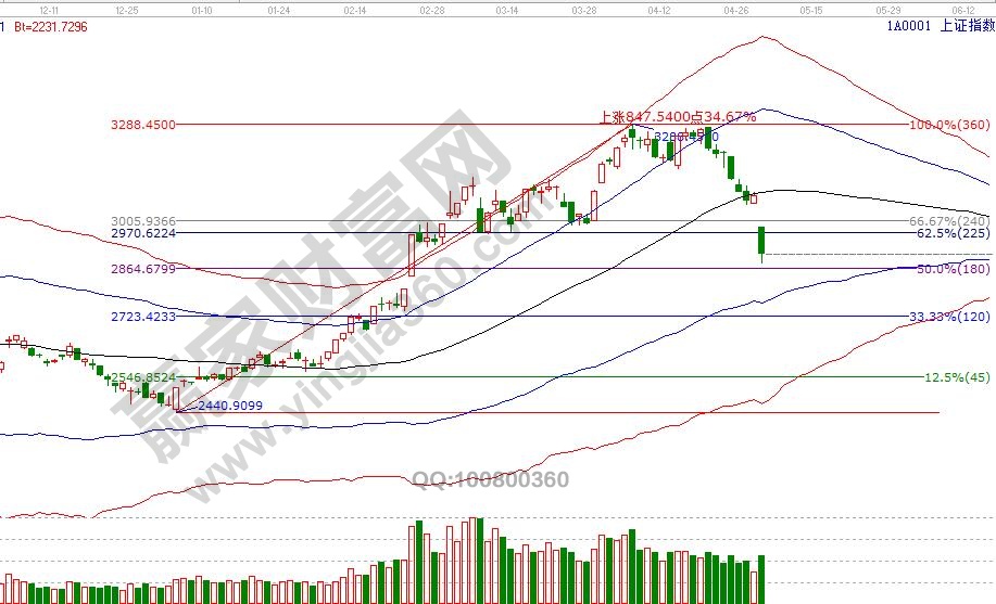 指數(shù)急跌之后即將觸及至周線極反通道生命線2836附近,同時(shí)江恩輪中輪60度2847點(diǎn)、波段百分比延伸線1倍循環(huán)二分位2834點(diǎn)支撐接近,按工具提示此區(qū)域是日線級別的一次短線交易機(jī)會,時(shí)間周期方面,早在4月24號已分享出5月時(shí)間窗口,8號是第一個(gè)日線時(shí)間窗口,規(guī)避了第一波主回調(diào)期后,空倉的學(xué)員等待時(shí)間窗口處的工具信號。操作策略,指數(shù)擊破黑色生命線,藍(lán)色下軌線是回撤目標(biāo)位,藍(lán)色下軌線性與2840附近是中線關(guān)注區(qū),做好計(jì)劃跟隨市場,整體倉位控制在3成以內(nèi)。