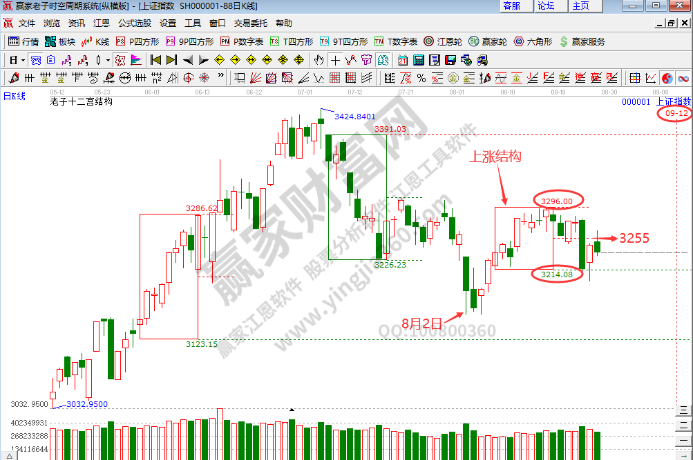 滬指8月26日以陰線收盤,工具信號(hào)顯示指數(shù)當(dāng)前處于觀察期,等待工具信號(hào)對(duì)方向的進(jìn)一步確認(rèn)。指數(shù)按預(yù)期在老子十二宮上漲結(jié)構(gòu)綠色支撐線3214點(diǎn)獲得支撐后反抽警戒線3255點(diǎn),維持前期觀點(diǎn),如站上3255點(diǎn),短期上攻有望延續(xù)至結(jié)構(gòu)頂部3296點(diǎn);如不能站上此線,將再次下探3214點(diǎn)和8月2日低點(diǎn)3155點(diǎn)。時(shí)間方面,老子十二宮顯示下一個(gè)時(shí)間窗口為9月12日。操作策略上,極反通道生命線下弱勢(shì)區(qū)域內(nèi)運(yùn)行,減少操作頻次,以輕倉操作或空倉休息為主,繼續(xù)密切關(guān)注證券、銀行、保險(xiǎn)這些大金融板塊。