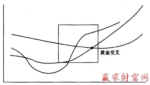 黃金交叉是指股價線、短期、中期、長期均線依次有規則地由下往上穿,形成交叉,即股價線從下往上穿過短期、中期、長期均線;短期均線由下往上穿中期、長期均線;中期均線由下往上穿長期均線,這樣有規則地交叉將形成三角狀的交叉,稱之為黃金交叉,它是一個重要的反轉信號,預示行情可能會短期、中期反彈或反轉上升,此時是風險小的買點。黃金交叉與多頭排列緊密相連,是確立多頭排列行情成立的前期步驟。如圖1所示。