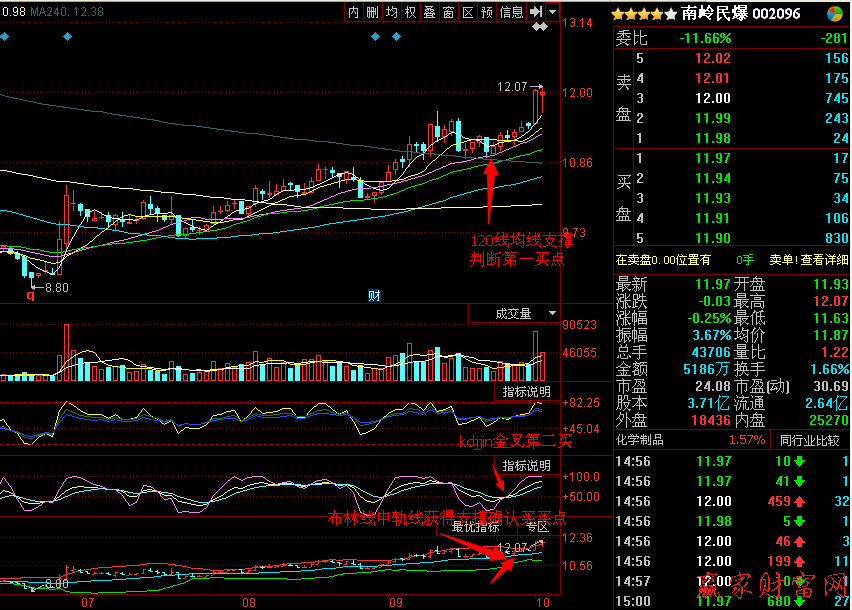 1從K線圖及技術指標方面看,個股起漲有以下特點:1、股價連續下跌,KD值在20以下,J值長時間趴在0附近。2、5日RSI值在20以下,10日RSI在20附近。3、成交量小于5日均量的1/2,價平量縮。4、日K線的下影線較長,10日均線由下跌轉為走平已有一段時間且開始上攻20日均線。5、布林線上下軌開口逐漸張開,中線開始上翹。6、SAR指標開始由綠翻紅。在上述情況下若成交量溫和放大,可看作底部啟動的明顯信號。