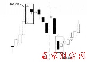 孕線的K線組合形態與吞沒形態相反,是后者的K線實體被完全包在前者的K線實體內部,因其形似孕婦,因而被稱為孕線。前者為陽K線、后者為陰K線組合而成的孕線稱為陰孕線、看跌孕線,一般常出現在上漲行情的高價區;前者為陰K線、后者為陽K線組合而成的孕線稱為陽孕線、看漲孕線,一般出現在下跌行情的低價區。前者為陽K線或陰K線,后者為十字星組合的孕線稱為十字星孕線,意義同前面二者相同。