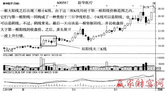 一、雙陽線夾三K線形態的特征