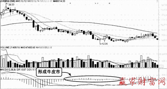 有時候莊家為了吸引散戶進場,會在下跌過程中控制股價上漲和下跌,制造MACD在0值附近波動的假象,如果散戶不能識別,往往被莊家誘惑,最后高位被套。