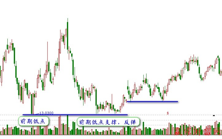 1、前期低點支撐。當然前期低點不一定是本輪回調的最低點,但是這個位置的支撐作用是很明顯的。其原因有三個:①前期低點位置有部分抄底資金的介入,后期的調整不會輕易跌破成本線;②當調整到前期低點位置時,介入成本降低,前期踏空的一部分投資者會因為低價而介入,因此,有很大的買入誘惑;③雙底,三底形態,都是重要支撐位。