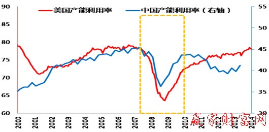 首先,2009-2010年的天量信貸刺激導致產能再度大幅擴張,產能過剩進一步惡化。由于外部金融危機來的過于突然,大規模刺激也迫不得已快速出手,很多項目并沒有經過嚴格的可行性評估,項目的遴選和實施過程中也出現了不少腐敗問題。結果就是無效投資大量增加,產能利用率從2011年開始再度下滑。