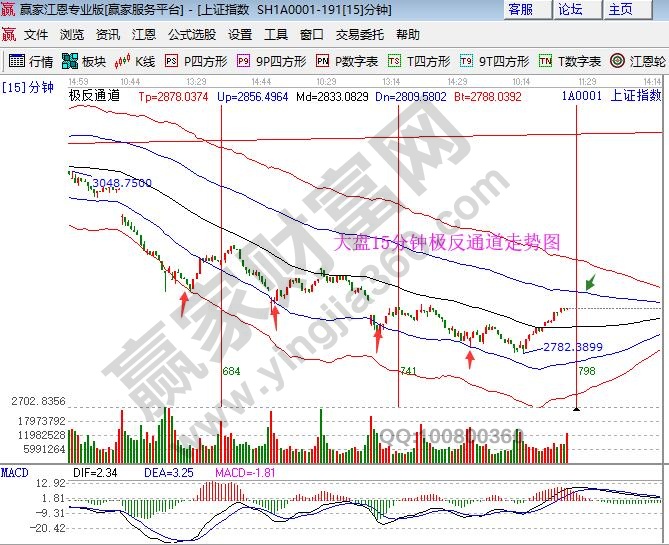 遵循贏家江恩系統規則,短線操盤線15分鐘K線收盤在生命線上,站穩一線看高一線,藍色上軌線2870附近是下周關注的一個點位,到達此線附近后投資者結合所持個股強弱情況選擇是否高拋今日加倉的機動籌碼,回踩點位看生命線2820位置,以線不破還將有向上反復動作。