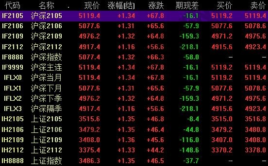 一般來說最主要的指標(biāo)就是每日價(jià)格表,上面有當(dāng)天股指期貨的開盤價(jià)、最低價(jià)、最高價(jià)、收?qǐng)?bào)價(jià)、結(jié)算價(jià)、成交量漲跌幅度以及未平倉(cāng)量等,還有當(dāng)時(shí)最有可能成交的幾筆委托單的行情和數(shù)量也值得關(guān)注。
