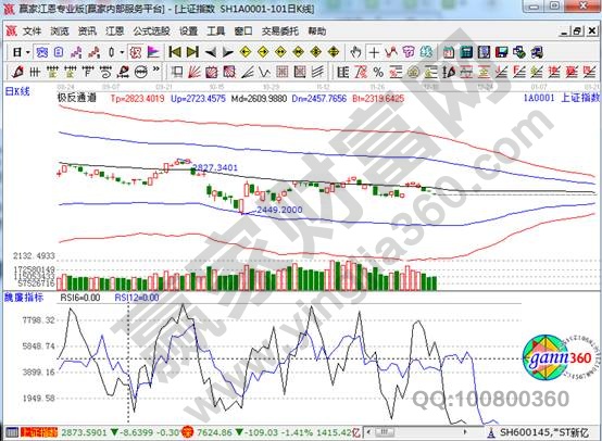 在常用的股票軟件中RSI的參數默認設置是6和12,如下面的上證指數走勢圖,RSI碧血劍法使用過程中rsi的參數并不是默認的參數,而是將其參數設置為9。