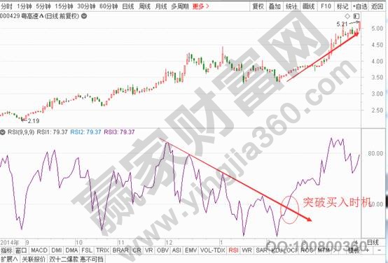 2、這個戰法如果是運用在上海黃金TD市場上也是非常廱的,如果是該指標突破20值做多單,跌破80值做空單。對于20和80的界限,在前面也介紹過,這里就再簡單的說一下,即RSI指標在20以下就是屬于超跌的,如果跌破之后我們就要注意行情的反彈機會,一旦突破20值行情開始拉升就可以果斷進入賺錢,一旦RSI突破80值就要注意風險,一旦跌破80值就要進行逢高減倉或者賣出股票。