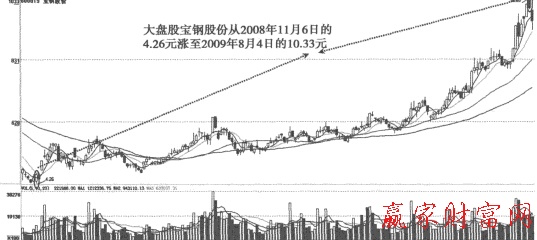 以寶鋼股份((600019)為例.其流通股本超過5億,是正宗的大盤股,但其盈利能力并沒有因為其屬于大盤股而下降。
