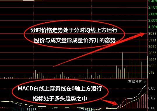 3、個(gè)股走勢(shì)開(kāi)始的時(shí)候,均線以及分時(shí)線同時(shí)啟動(dòng),下方直接放量,比較大,買入信號(hào)明顯。