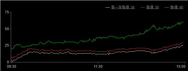 今日漲停家數(shù)30家(不包括ST股27家),跌停60家。創(chuàng)一年收盤新高個股有58家,新低個股有324家。市場極少個連板股強勢股未能吸引活躍資金,跌幅7%以上的個股近百家,交投情緒低迷,賺錢效應差。