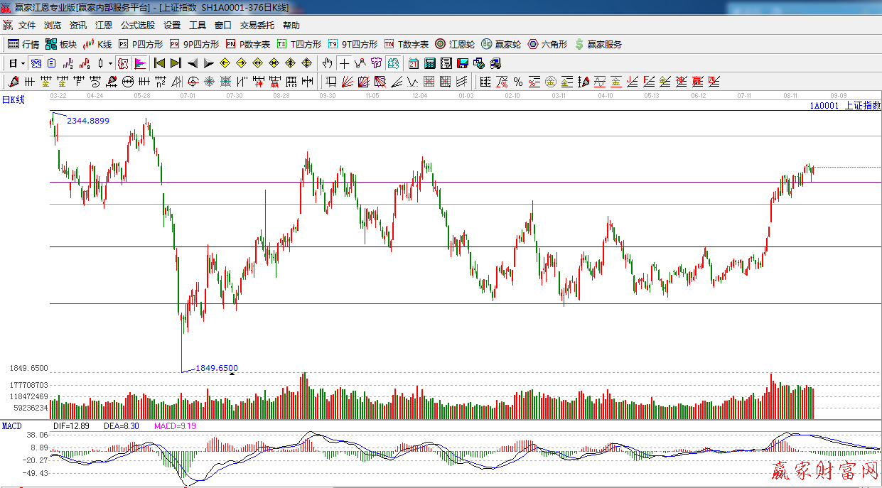 下面我們就再次利用這個(gè)神秘的六角形來解析一下上證指數(shù)