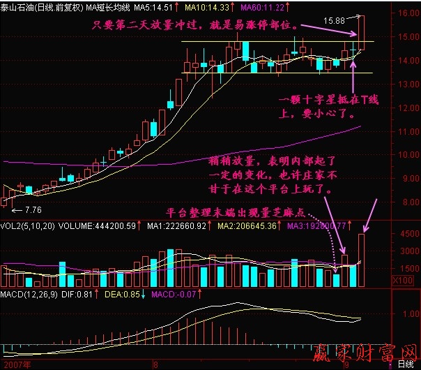 一只股票莊家建倉之后,就會圍繞頭部展開行情,慢慢靠近頭部,而且還會無精打采的回落,這一階段成交量也一直不活躍,直到他運行到右上角的時候,此時就是黎明前的黑暗,莊家在等待黎明,這個時候也是最容易漲停的時候。