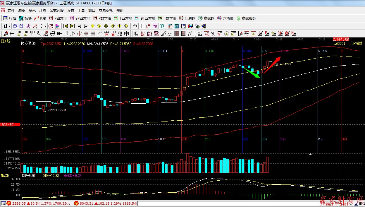 江恩軟件極反通道強勢外軌線不破可看高一線,如圖所示;